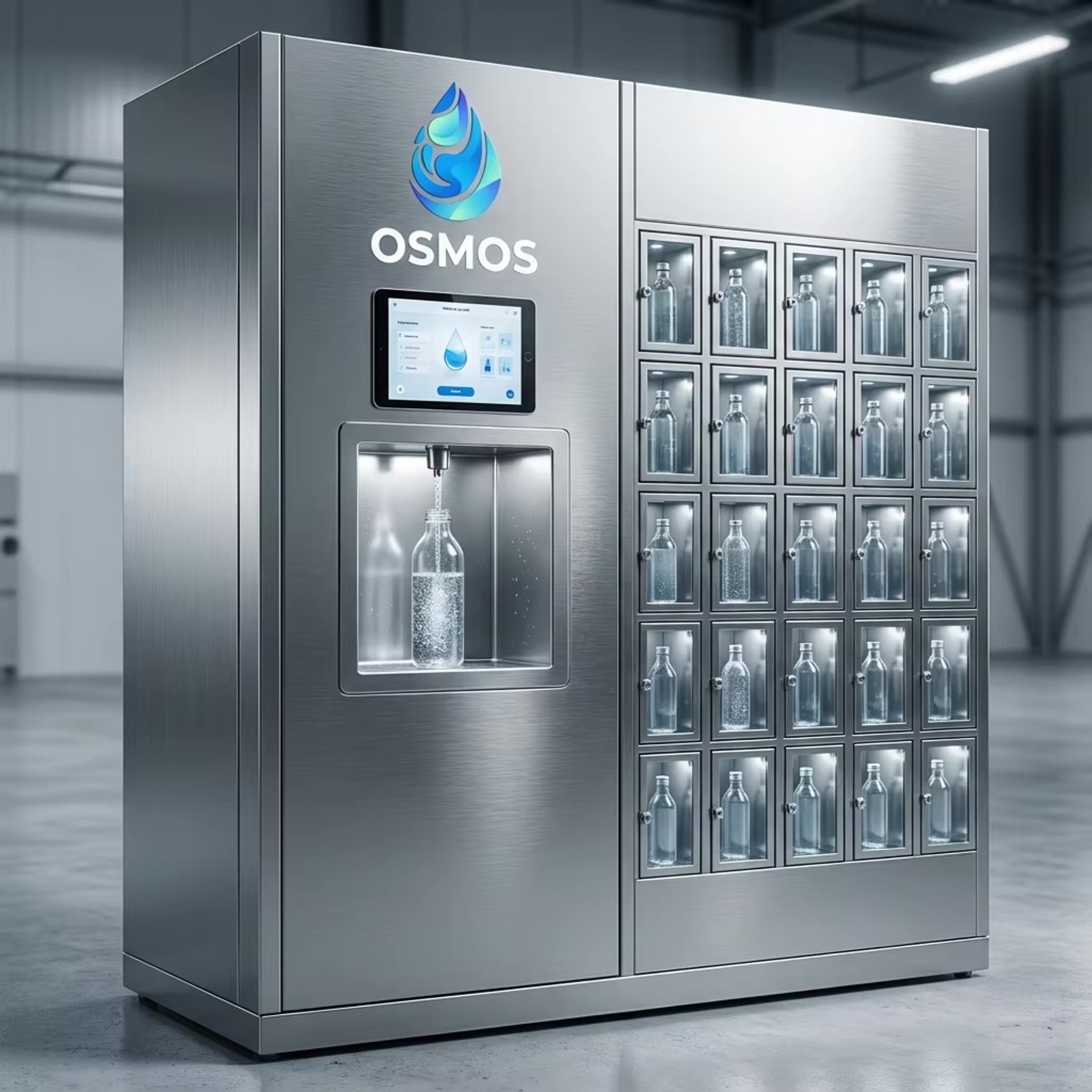 Osmos propose une eau purifiée par osmose inverse, dynamisée et vitaminée, idéale pour les sportifs et les éco-conscients.